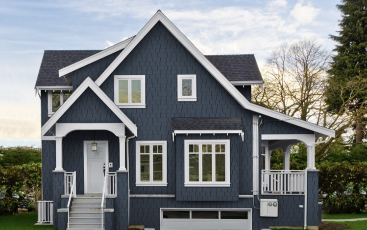 For a clean-lined modern look you could even paint the window trim the same. Midnight Blue House Siding with White and Black Trim.